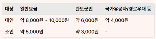 주차는 완도항 공영주차장을 이용하면 편리하며, 1일 주차 요금은 약 5,000원입니다.