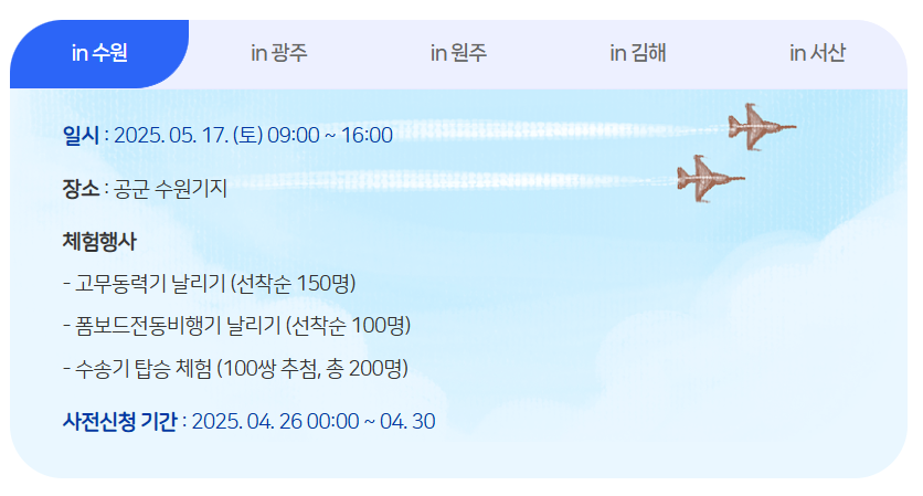 5월 17일(토): 경기 수원 공군 수원기지
