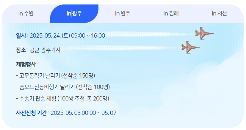 5월 24일(토): 전남 광주 공군 광주기지