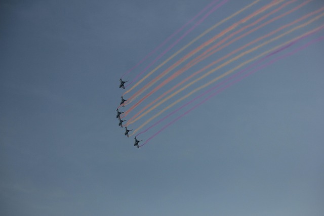 해 질 무렵의 하늘 위를 수놓는 곡예비행은 사진 찍기에도 최적의 시간!