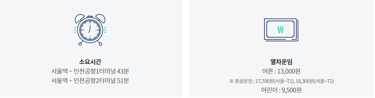 ✔ 어린이·노인 할인 및 교통카드 결제 불가 (직통열차는 무조건 예매 티켓 필요)