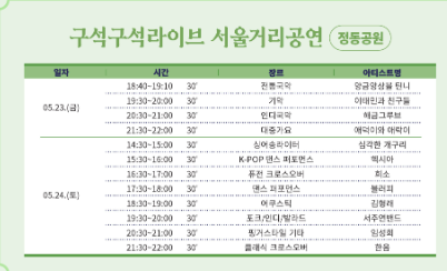 3. 우천 시: 야외공연 및 체험 프로그램은 기상 상황에 따라 변경 또는 취소될 수 있습니다.