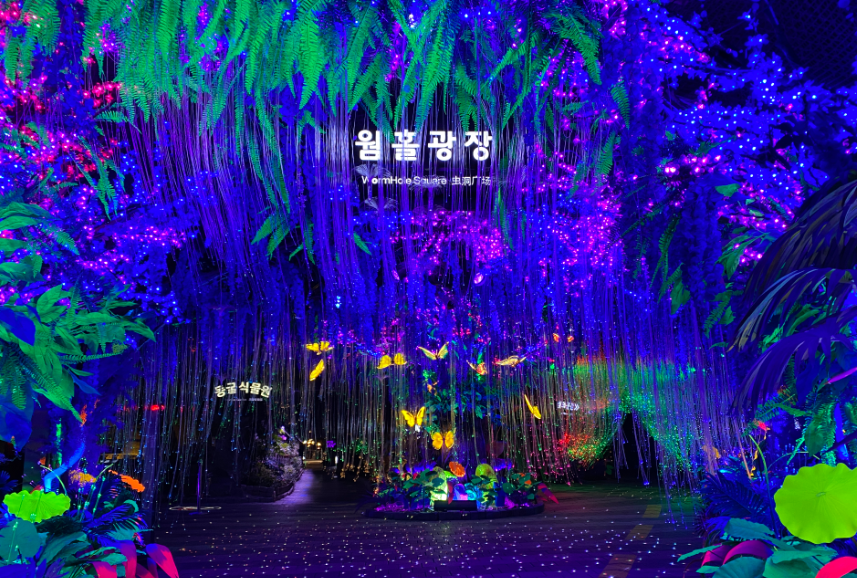 동굴 내부의 벽면과 천장에 3D 맵핑과 프로젝션이 펼쳐지는 구간으로, 아이들은 물론 어른들도 감탄하게 되는 공간입니다. 예술성과 기술이 결합된 환상적인 쇼를 감상할 수 있어요.