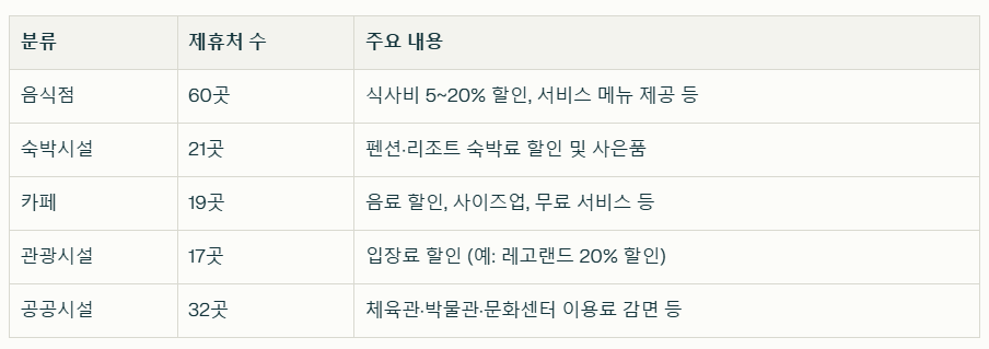 현재 기준 제휴처는 약 150개소(2025년 7월 기준)에 달하며, 앞으로도 확대될 예정입니다.