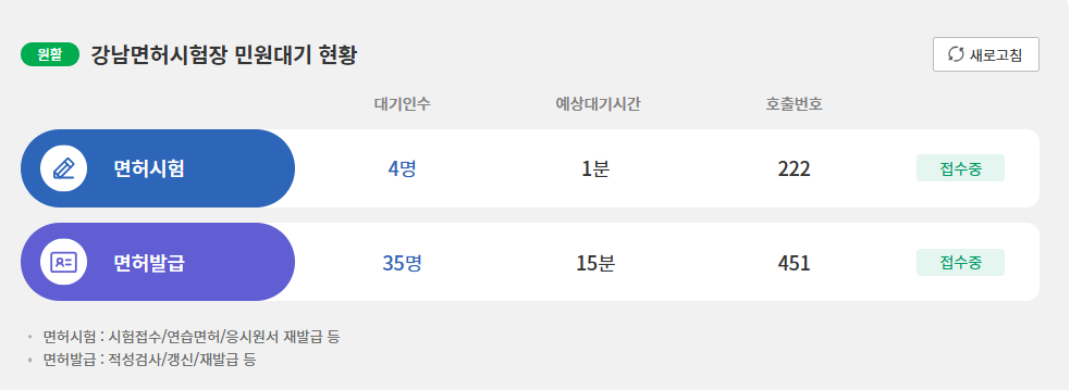 오프라인 신청 시 대기시간이 긴 지역이나 시험장은 방문 전 민원 대기 현황을 확인하는 것이 좋습니다.