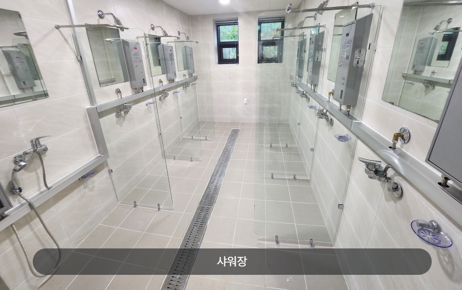 - 샤워장 1동, 세면장 1동, 개수대 3동, 화장실 4동