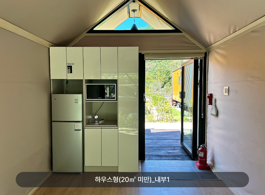 3) 하우스형B: TV, 냉장고, 전자레인지, 인덕션 2구, 에어컨, 좌식 탁자