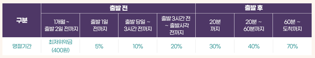 SR은 명절 승차권 노쇼(No-show)를 방지하기 위해, 환불 위약금 기준을 주말·공휴일 수준으로 강화했습니다.