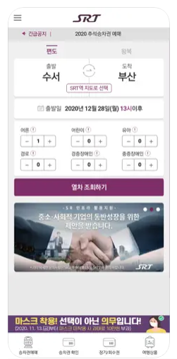 SRT 앱, 홈페이지, 역 창구 등에서 상시 구매 가능