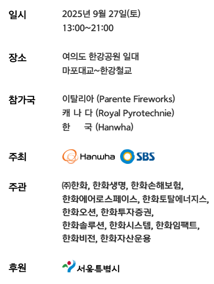 1. 행사명: ㈜한화와 함께하는 서울세계불꽃축제 2025