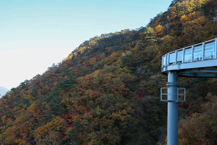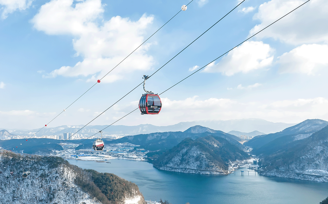 바닥이 투명한 크리스탈 캐빈을 이용하면 발 아래로 펼쳐진 의암호의 푸른 물결을 생생하게 감상할 수 있습니다. 높은 곳에서 바라보는 호수의 풍경은 마치 공중에 떠 있는 듯한 느낌을 주며, 사진 촬영 명소로도 인기가 많습니다.