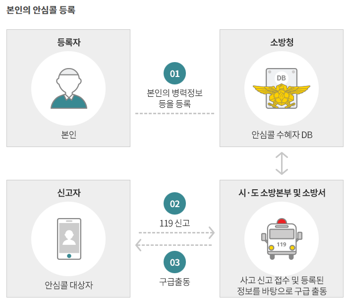 이때 119 안심콜 서비스에 사전 등록된 정보가 있다면, 구급대원들은 출동 즉시 환자의 병력, 복용 약물, 보호자 연락처 등을 확인할 수 있어 더 빠르고 정확한 응급처치가 가능합니다.