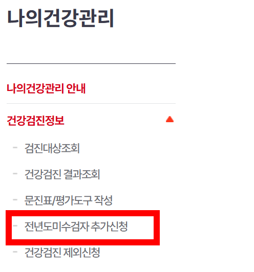 전년도 미수검자 신청 방법