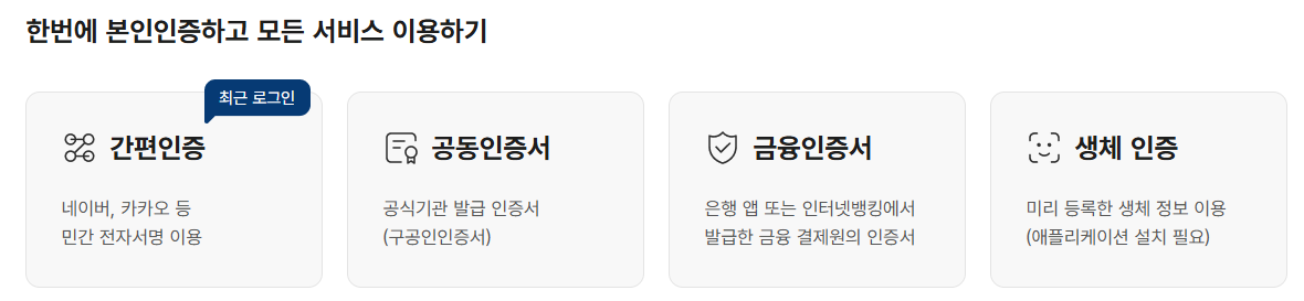 인증 절차가 두 번 필요하므로, 인증서 준비를 미리 해두는 것이 좋습니다.