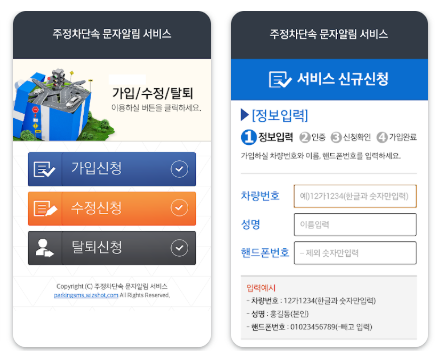 주정차 단속 알림 서비스 '통합가입도우미' 앱 스마트폰에서 다운로드