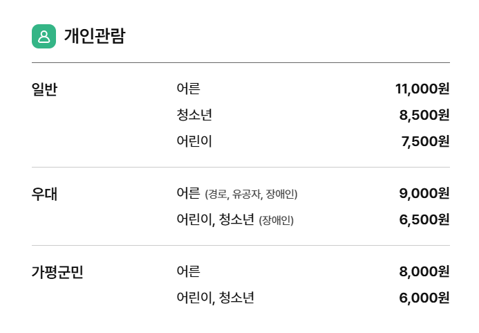 현장 구매와 온라인 예매 모두 가능하며, 가평군민의 경우 신분증 제시 후 현장 매표소에서만 구매 가능합니다.