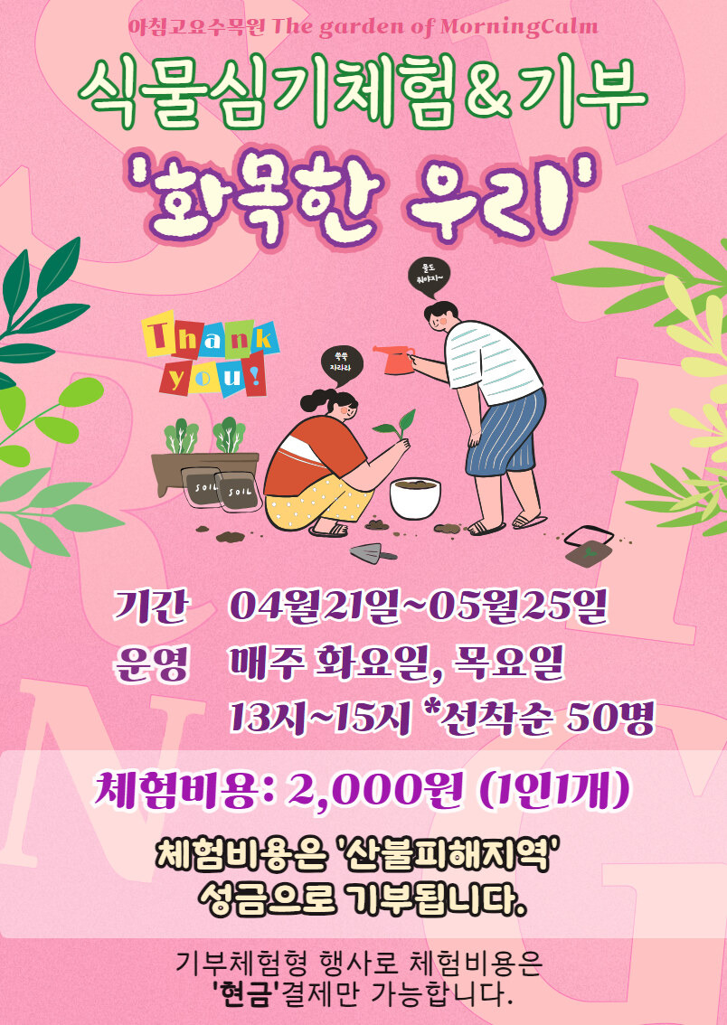 따뜻한 봄날, 가족 또는 사랑하는 사람들과 함께 아침고요의 자연을 만끽해보시길 바랍니다.